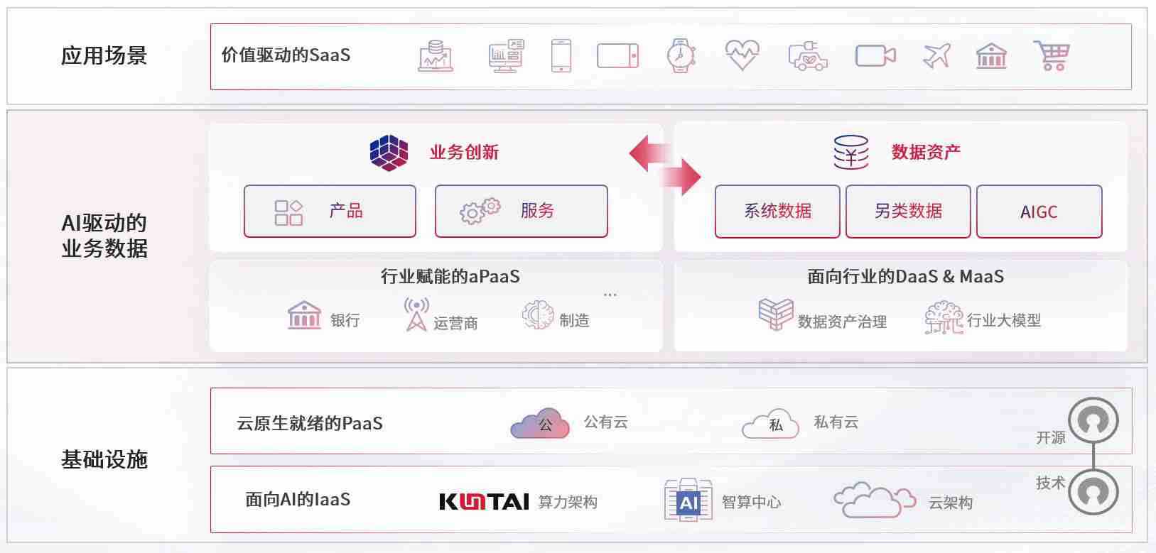 数字时代,,,围绕企业数字化转型的关键要素,,创富论坛数码开创性的提出数云融合战略和技术体系框架,,,着力在云原生、、、数字原生、、AI原生和信创产业上架构产品和服务能力,,,为处在不同数字化转型阶段的快消零售、、汽车、、、金融、、、、医疗、、、政企、、、教育、、运营商等行业客户提供泛在的敏捷IT能力和融合的数据驱动能力,,构建跨界融合创新的数字业务场景和新业务模式,,助力企业级客户建立面向未来的核心能力和竞争优势,,,全面推动社会的数字化、、智能化转型升级。。。。