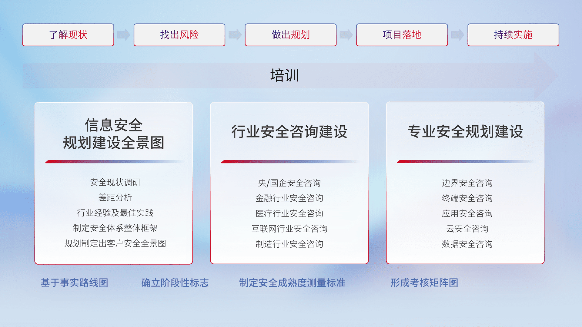 梳理客户信息安全现状调研、、差距分析结果,,,,结合行业先进经验及最佳实践,,,,制订客户的信息安全管控体系总结架构,,,,最终形成一个完整的客户信息安全规划与建设的全景图。。。。